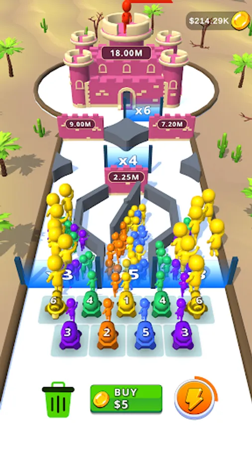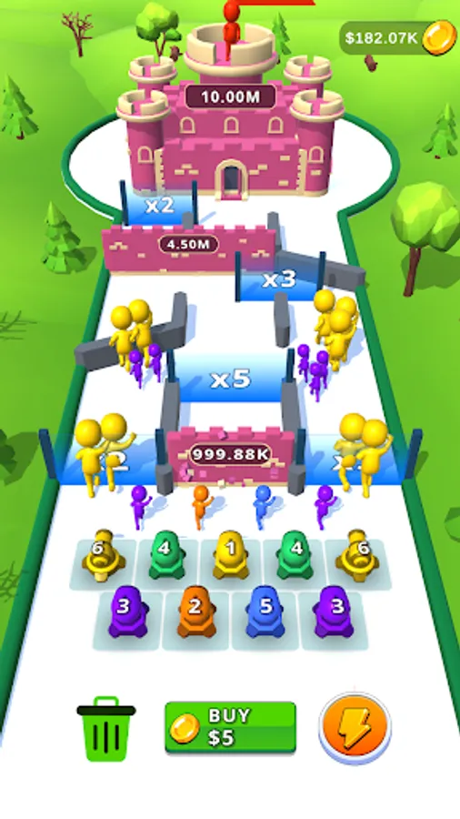 Welcome to "Idle Attack 3D" In this addictive mobile game, Shoot characters from a cannon. Generate coins and buy more cannons using these coins. Merge the cannons to increase their strength. Tap faster on the screen to increase the speed of the cannon shoots. Destroy the defenses and finally the castle.