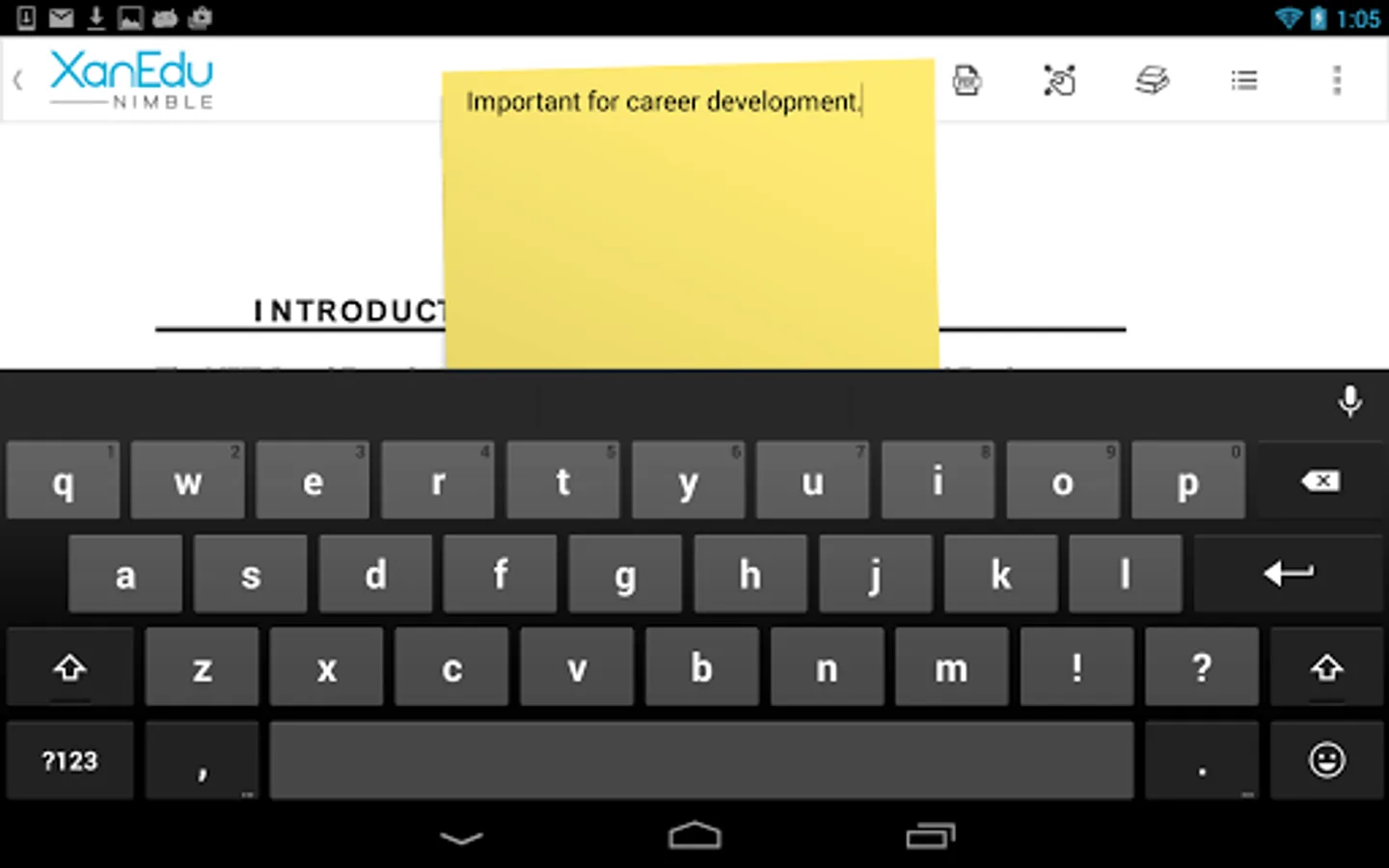 Access your XanEdu Nimble digital materials on your Android device. The XanEdu Nimble App makes viewing, managing and interacting with XanEdu Nimble custom materials easy and efficient.