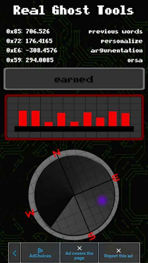 Combining a visual radar with a word detection system, this app allows you to have a complete ghost hunting kit in your pocket!