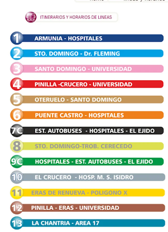 -Information of the metropolitan transport of the province of León to be able to move around all the towns of León.