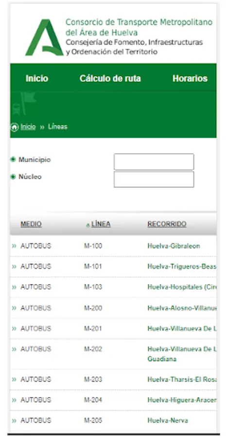 -Schedules and lines of the buses of the consortium of all the towns of Huelva.