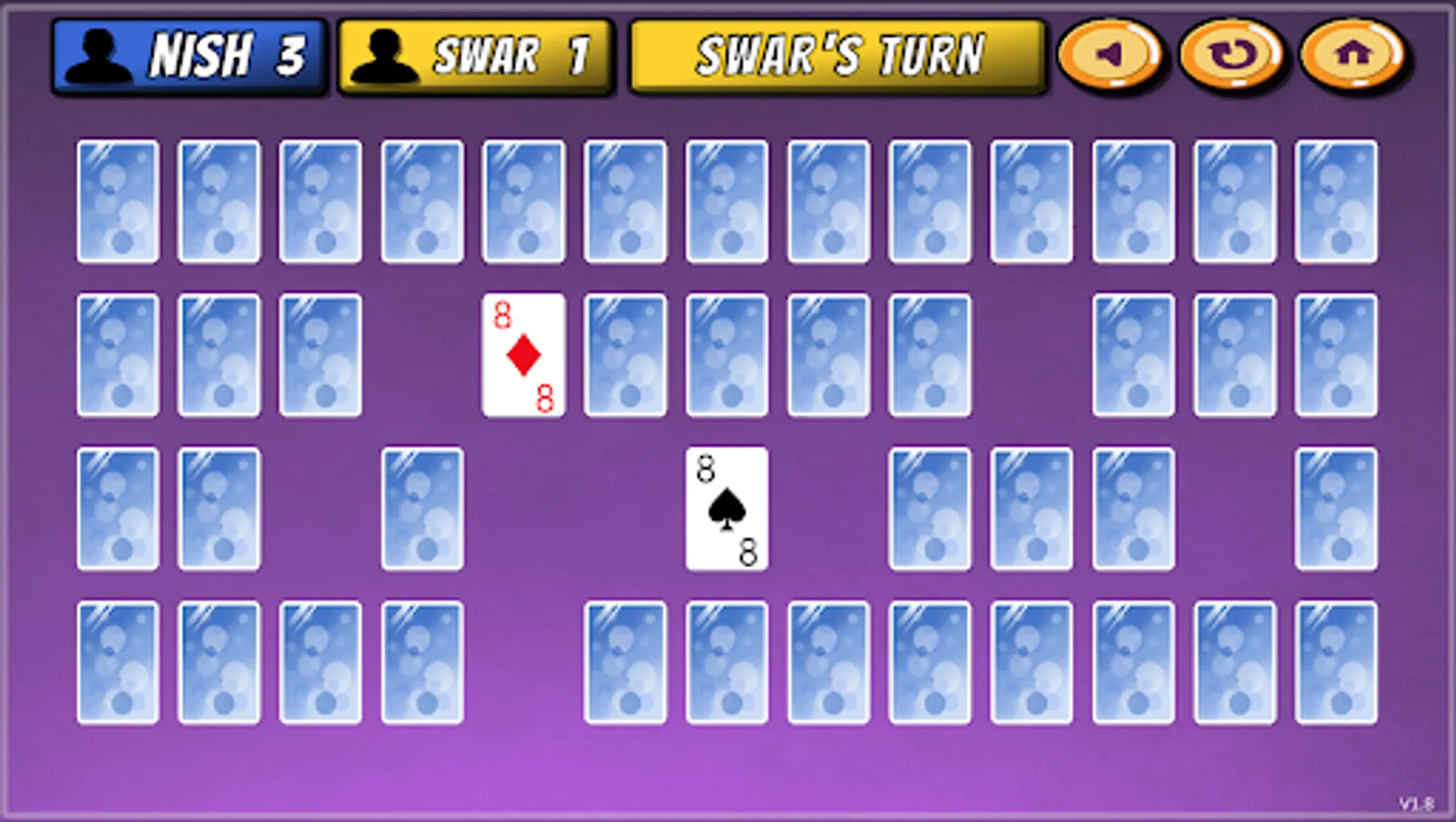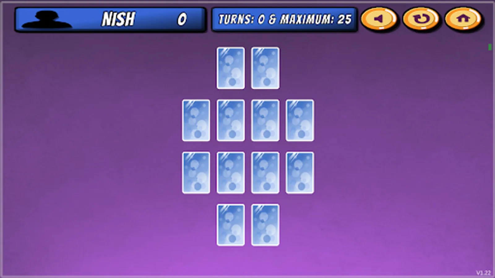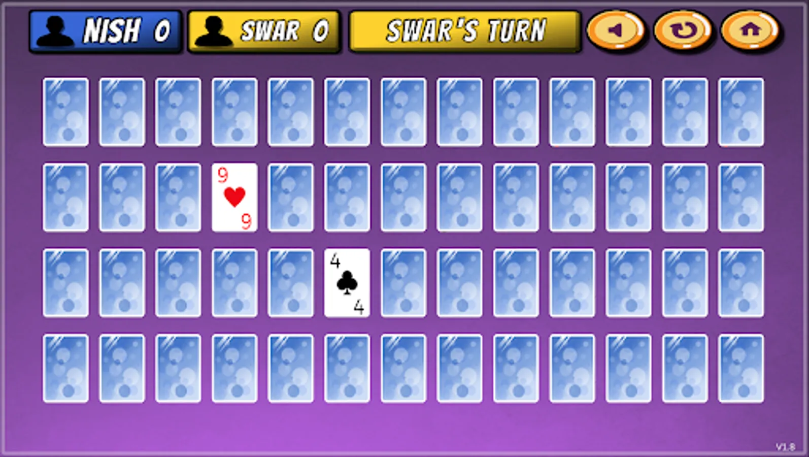 • If the cards do not match (Cards are of different numbers), then player loses their turn and those cards are flipped again on the same spot.