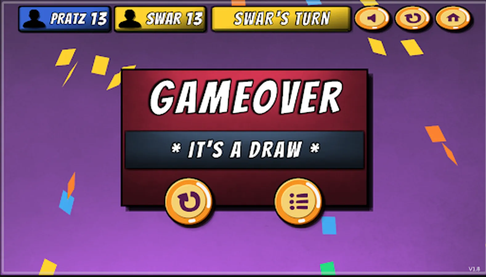 • Vs Computer mode: 5 different levels – Very Easy, Easy, Normal, Hard and Insane. Challenge yourself with increasing difficulty of Computer (AI).