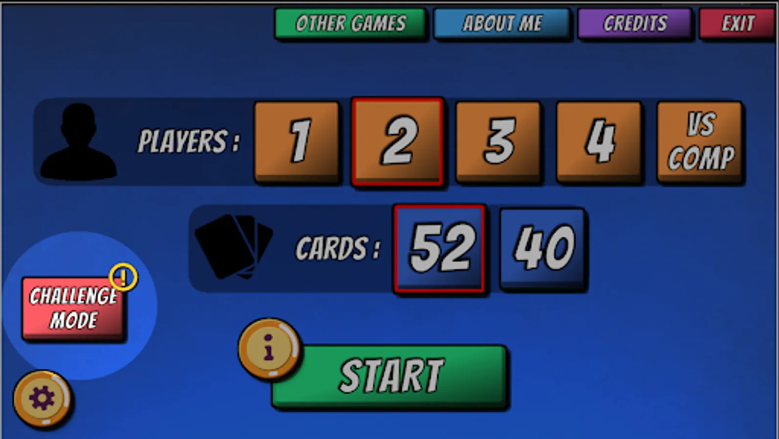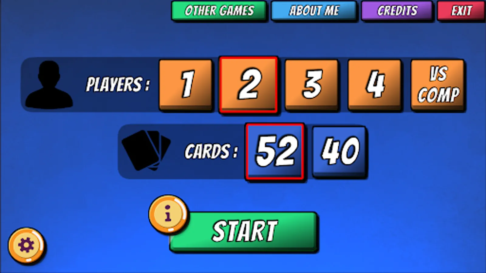 • Full Deck (52) or Small Deck (40) Cards: Full deck is tougher than small deck.