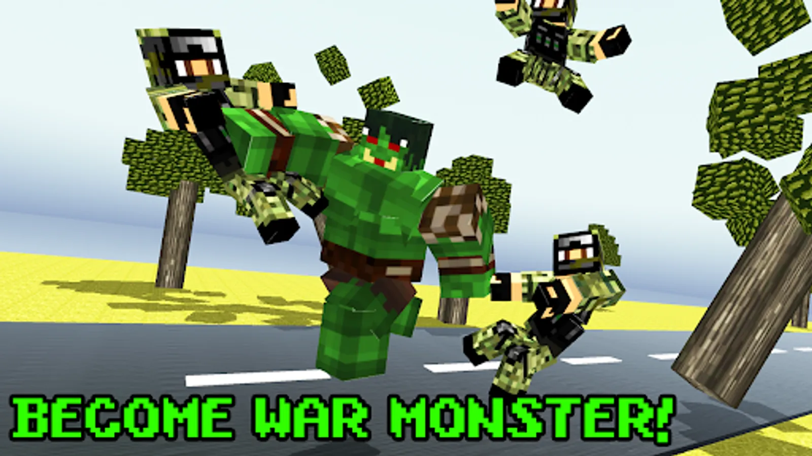 War Monster has been unleashed! This bulky monster is going to smash every police and army he saw. Not even tank or other superheroes can stop this raging monster from destroying the peacefully crafted city of blocky city.