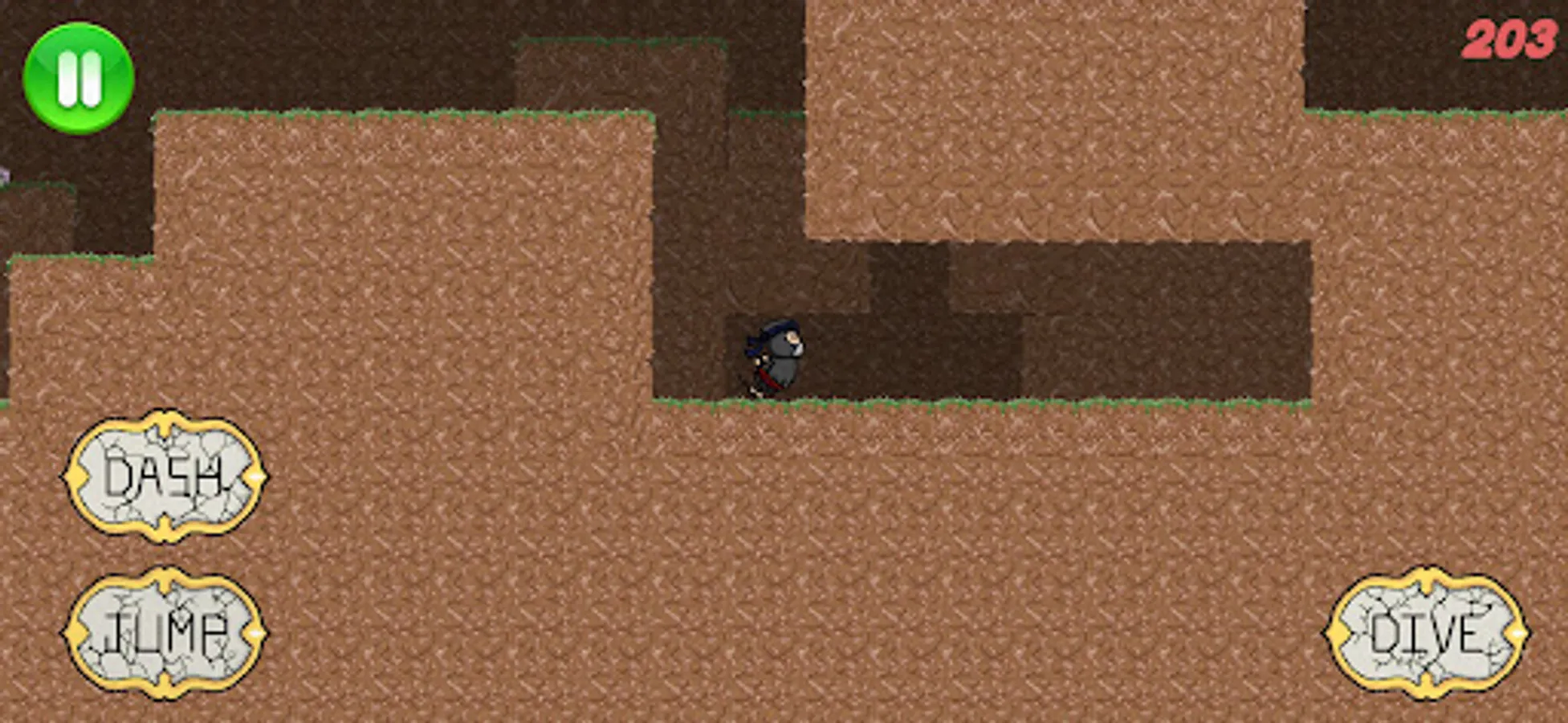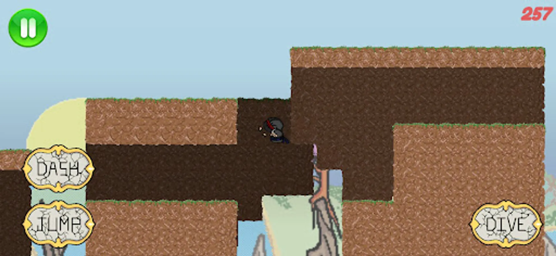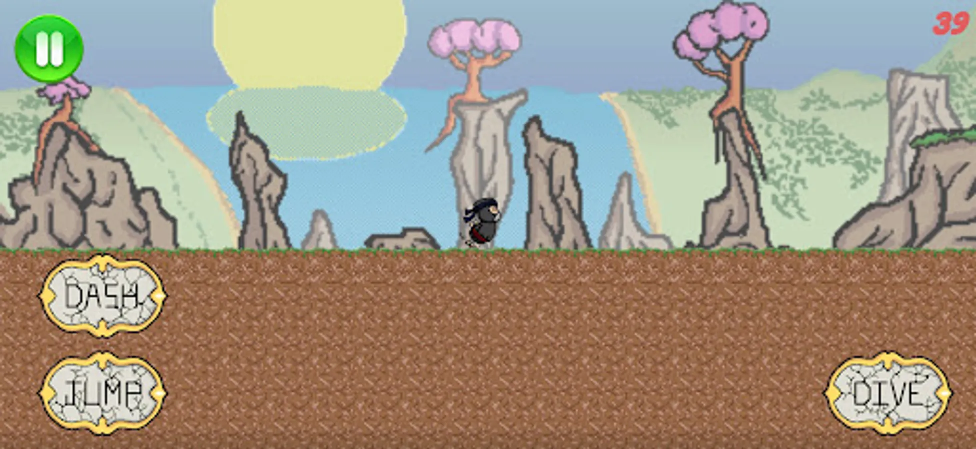 Dans ce jeu vous incarnez un ninja, courant dans les montagnes de plus en plus vite. Pour avancer, vous avez à votre disposition des sauts, doubles sauts, téléportation et plongeons, qui vous permettront de vous faufiler à travers les montagnes et cavernes.