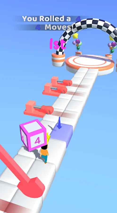Tap at the right time to stop the rolling dice. Tap to move to where your arrow stopped