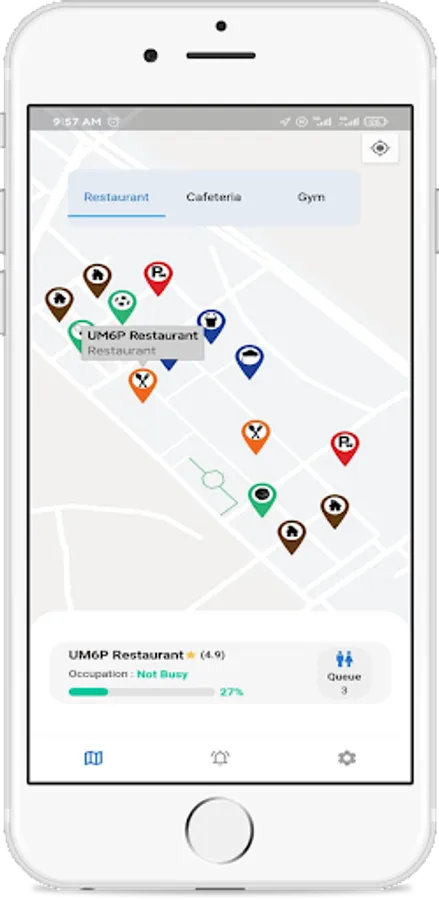 No Waiting UM6P App is an internal assistant for all Mohammed VI Polytechnic University's students and staff to plan and choose the best moment and the best facility (between different restaurants or Gym spaces, for example) before visiting, based on real time data of different occupations, queues and waiting times.