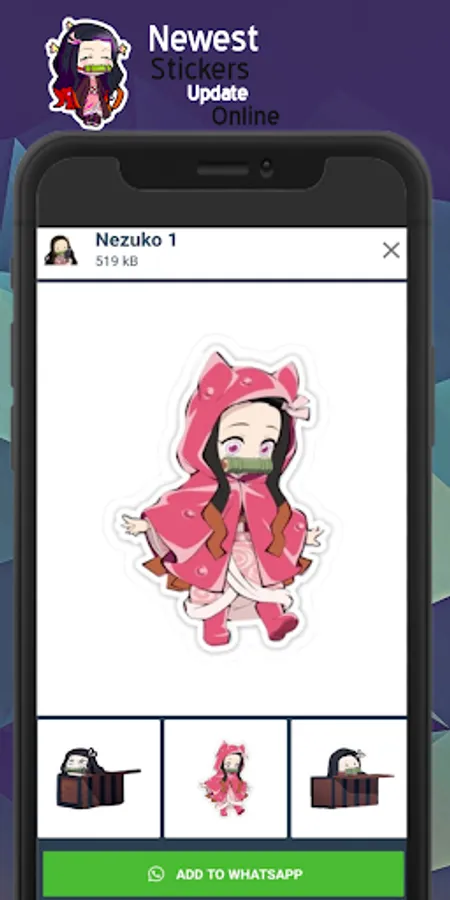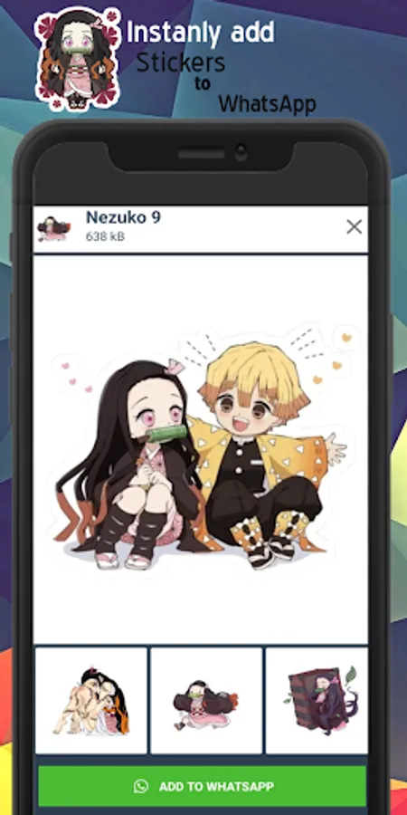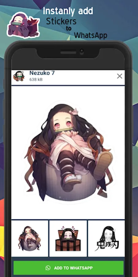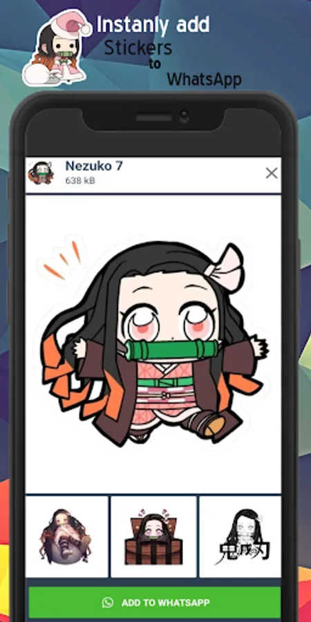 Nezuko Stickers for WhatsApp is a sticker app that contains cute anime stickers from the anime demon slayer.