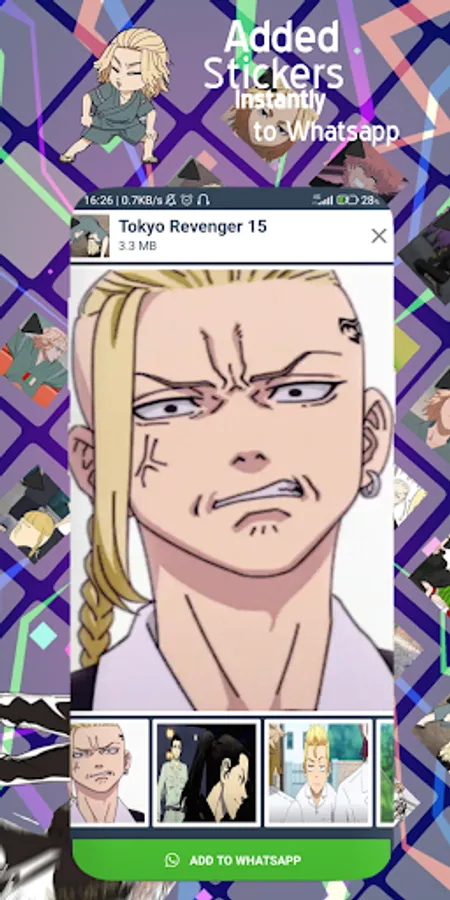 Tokyo Reveners Anime Stickers for WhatsApp is the largest collection of animated stickers from your popular and favorite anime. with HD quality stickers and of course funny and cool. You just need to add a sticker pack as per your wish.