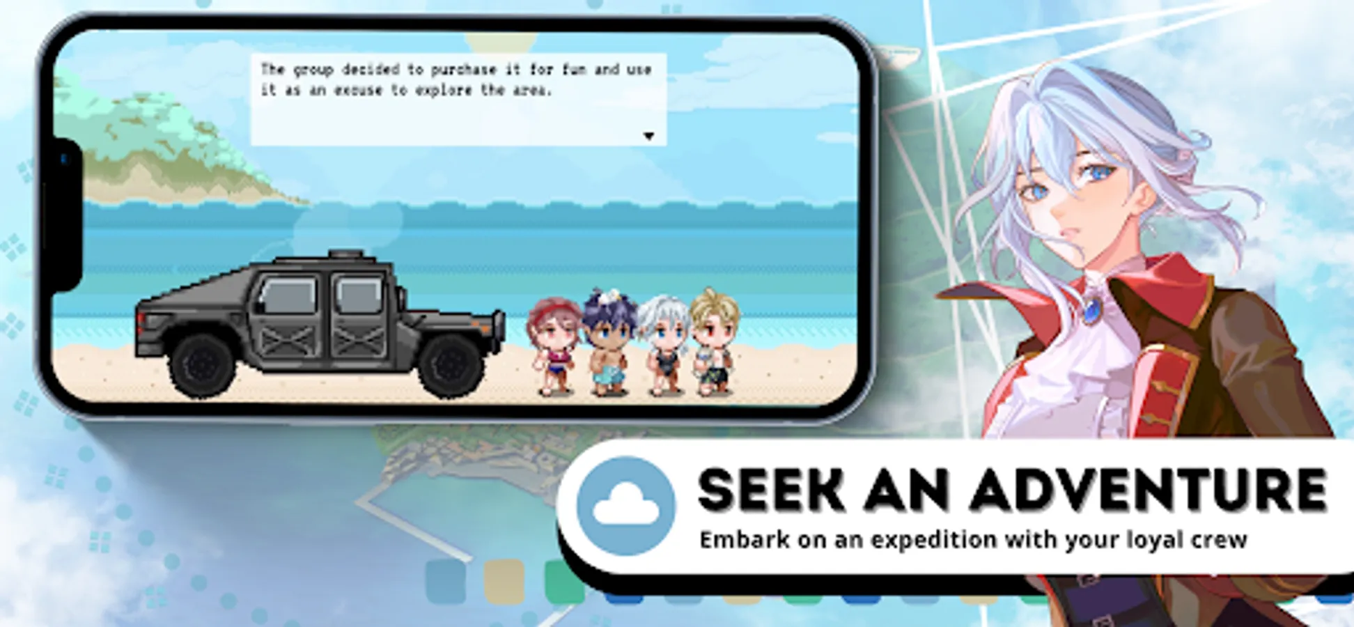 “Untold Atlas” is an anime, choice-driven expedition otome simulation game where you can bond and interact with fellow coworkers and three romance-able characters to unlock group chats and romantic scenarios in the story!