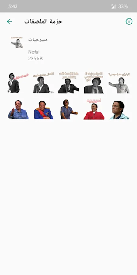 The program contains a lot of stickers, funny stickers, and comedy stickers of laughter for WhatsApp, such as: theatrical stickers (Adel Imam, the children have grown, friendly Sayed Shaghal), Egyptian stickers (Mohamed Saad, Al-Lambi), Gulf stickers (Tash Ma Tash, Nasser Al-Qasabi, Abdullah Al Sadhan) and many more! If there are any suggestions for posters that you would like to see in the next updates, please contact us and we will work to achieve this.