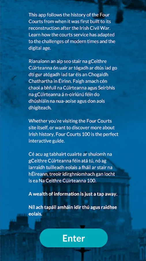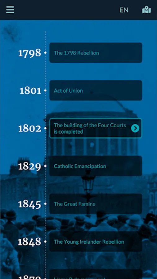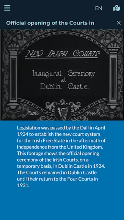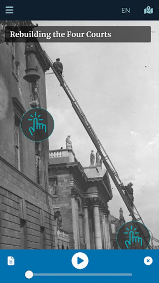 This app follows the history of the Four Courts from when it was first built to its reconstruction after the Battle of the Four Courts in 1922. Learn about the three tumultuous days of the battle and how they led to a defining moment in Irish History – the Civil War.