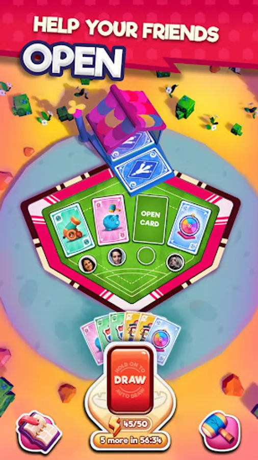 ** Help your friends to get rare cards by opening a card.