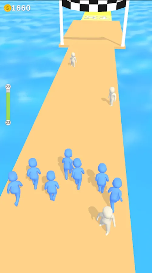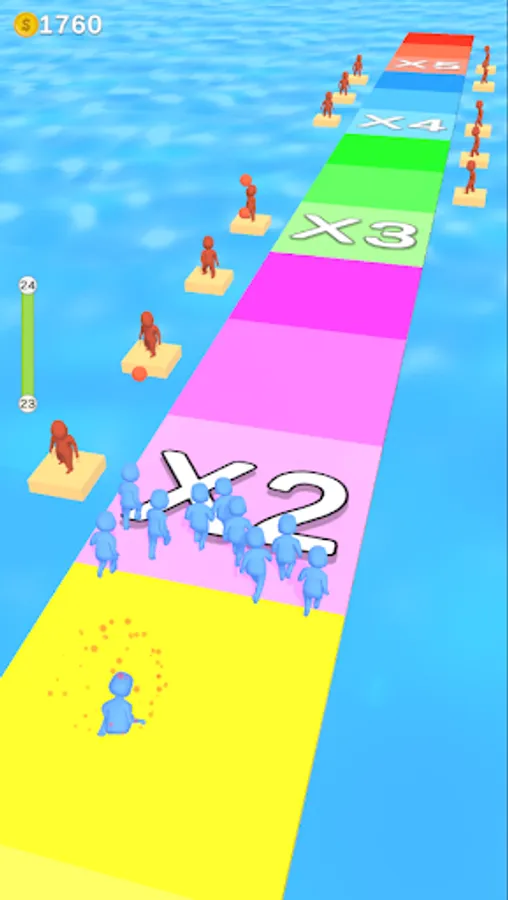 Shoot white characters to take them to your side and fight against red ones!