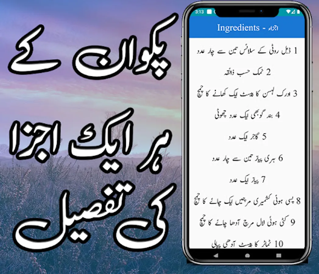This App gives Chinese recipes in Urdu chicken shashlik.