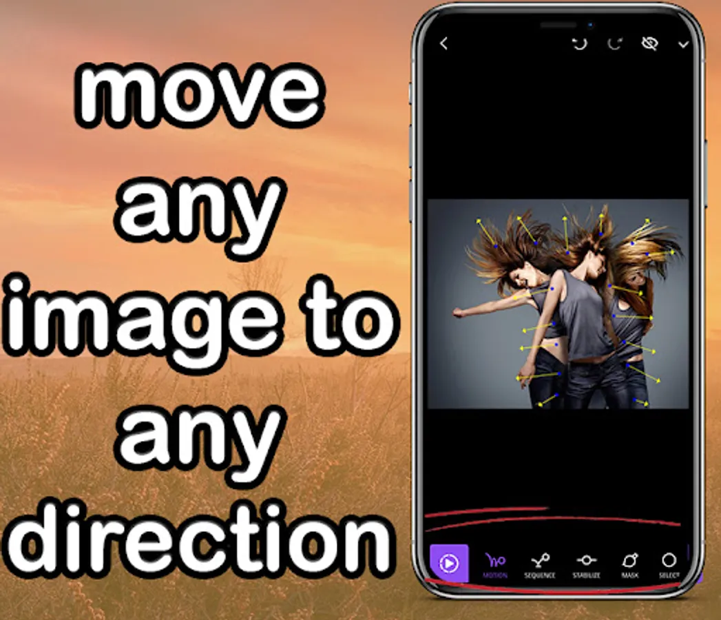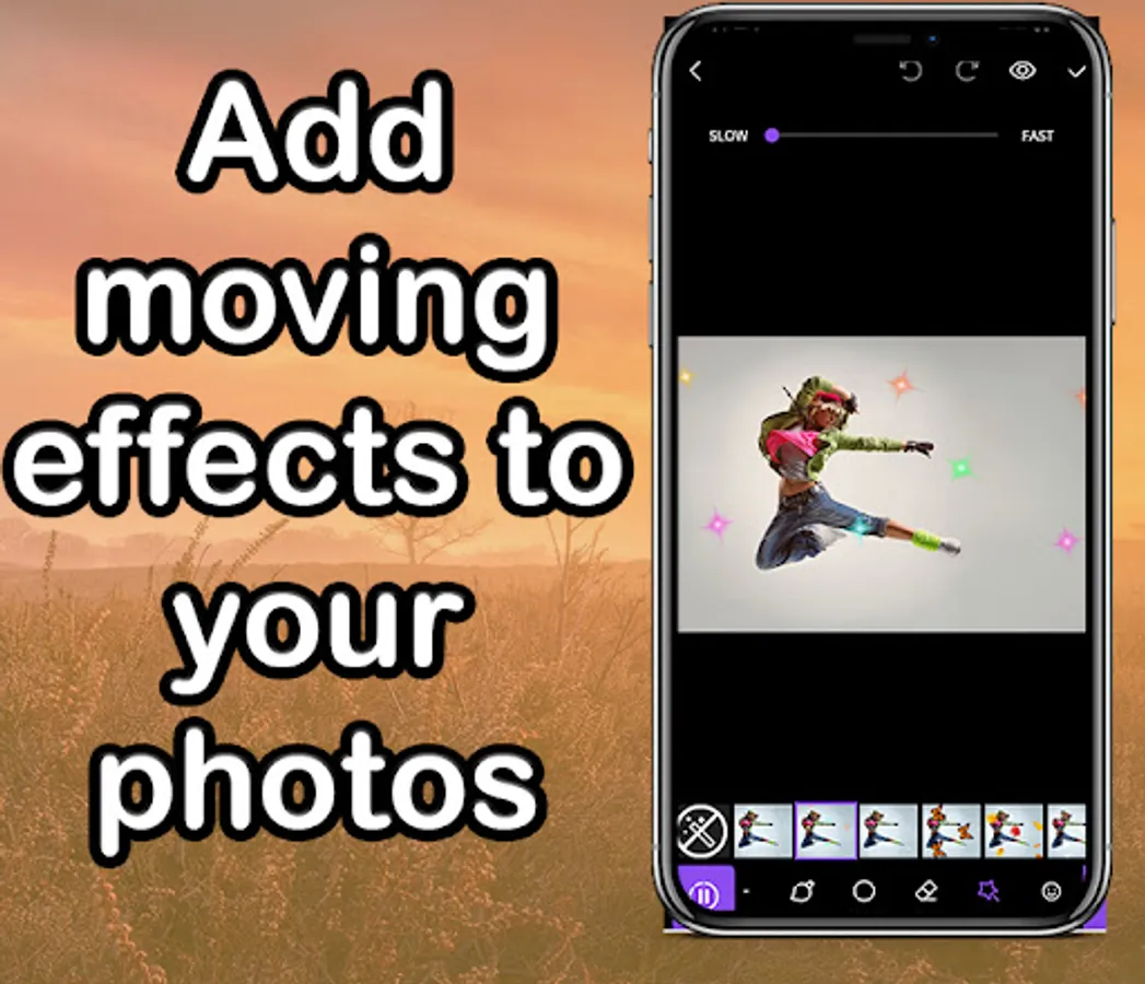 Photo Editor App is a “motion on image editor” that lets you create stunning living photos in motion on the go.