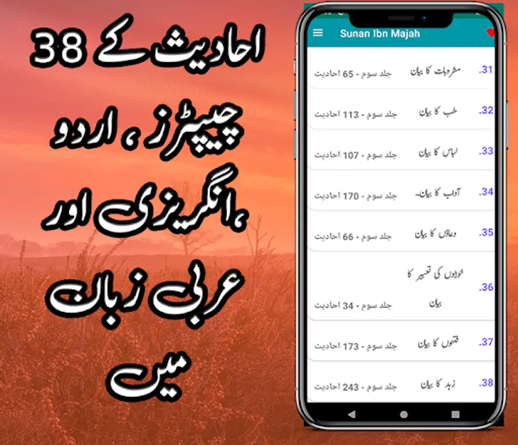 Sunan Ibn Majah is an Islamic Hadith (Hadees) book. The book is compiled by Imam Muhammad bin Yazid Ibn Majah al-Qazvini (rahimahullah) and he was died in 275?. It contains 4340 Hadiths (Ahadees) in 39 chapters. Chapter 1 contains 266 Hadith. Chapter 2 and chapter 3 contain Hadees related to cleanliness. In chapter 3 issues regarding prayers have been discussed. Chapter 4 contains 29 Hadees related to Adhan. Chapter 7 contains 205 Hadees corresponding Funeral issue. Chapter 10 and 11 are the two most important chapters in which Imam Ibn Majah has discussed Hadees related to marriage and divorced problems. In chapter 24 Imam Ibn Majah has discussed inheritance related Hadees. Chapter 25 tells us about the importance of Jihad. Chapter 26 reveals information about Hajj and Umrah. In chapter 30 you can read Hadees related to meal. Chapter 33 contains Hadees related to clothing. Chapter 36 provides Hadees related to dreams. This Sunan Ibn Majah App provides you Sunan Ibn Majah with references for authenticity. Moreover you can search and read online this book in Arabic with Urdu and English translation.