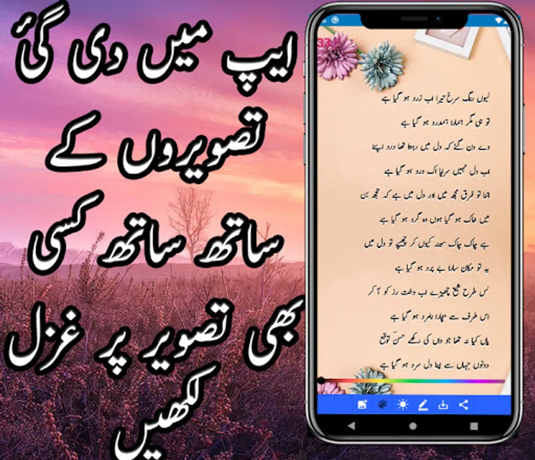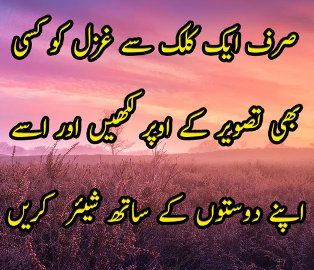 Urdu Ghazal app is an amazing app that you can use offline and can read up to 50,000 Urdu Ghazals and you can read any Urdu ghazal and fix it on any of your photo