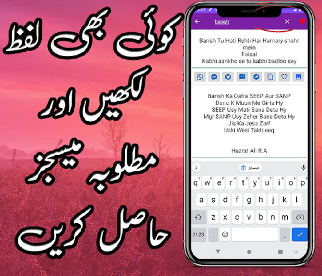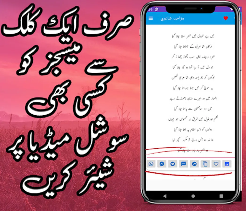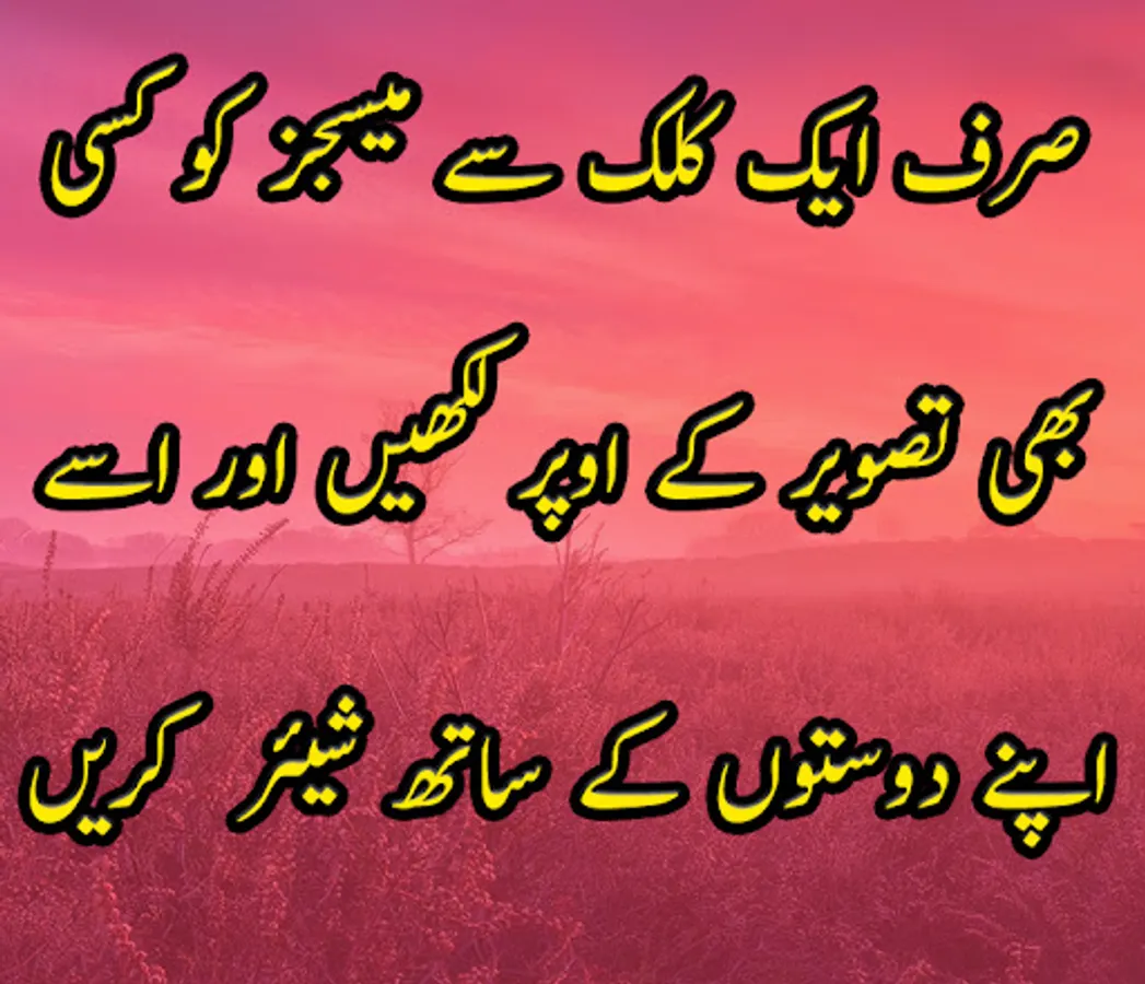 Urdu SHAYARI is the largest collection of Urdu Poetry messages that belongs to different categories. You can send your Poetry directly from this app through SHAYARI, Viber, Whatsapp, Facebook, Twitter, Hangouts etc. loved ones.