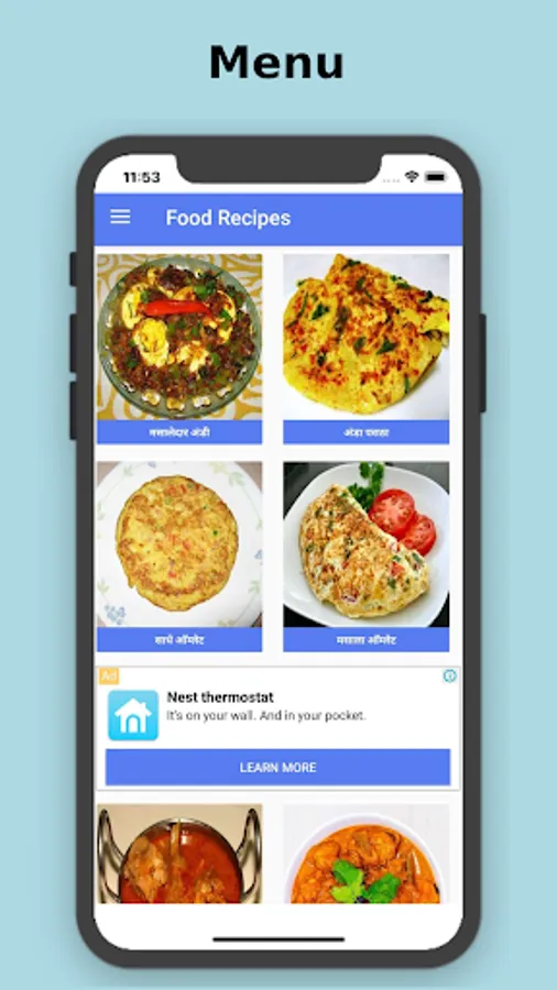 This Recipe apps the collection of best and various types of Indian Recipes In Hindi Language. Application describe many snacks,breakfast or nasta recipes in hindi language.