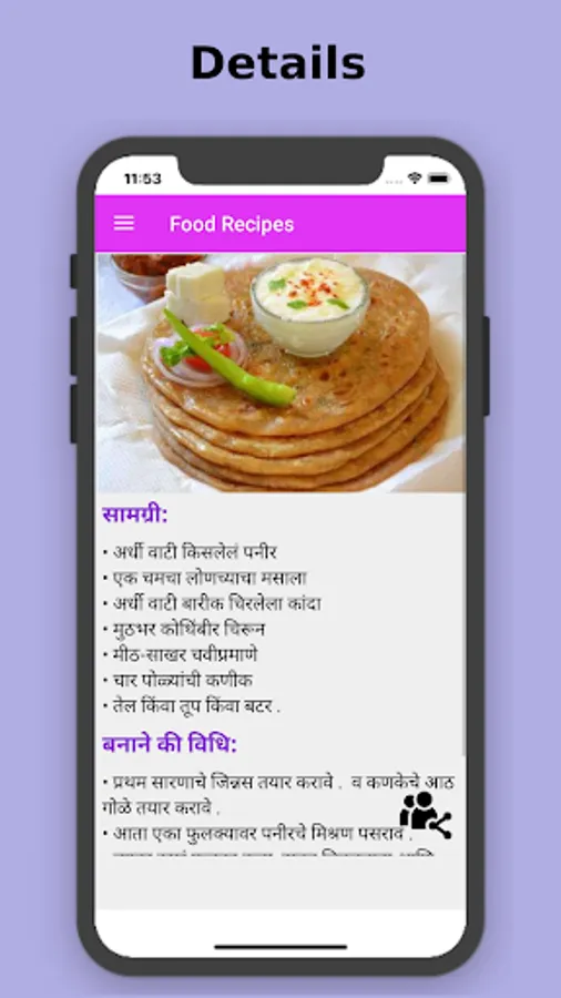 This Recipe apps the collection of best and various types of Indian Recipes In Hindi Language. Application describe many snacks,breakfast or nasta recipes in hindi language.