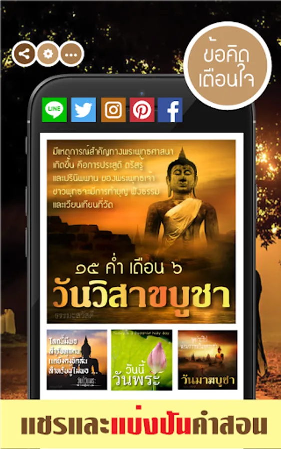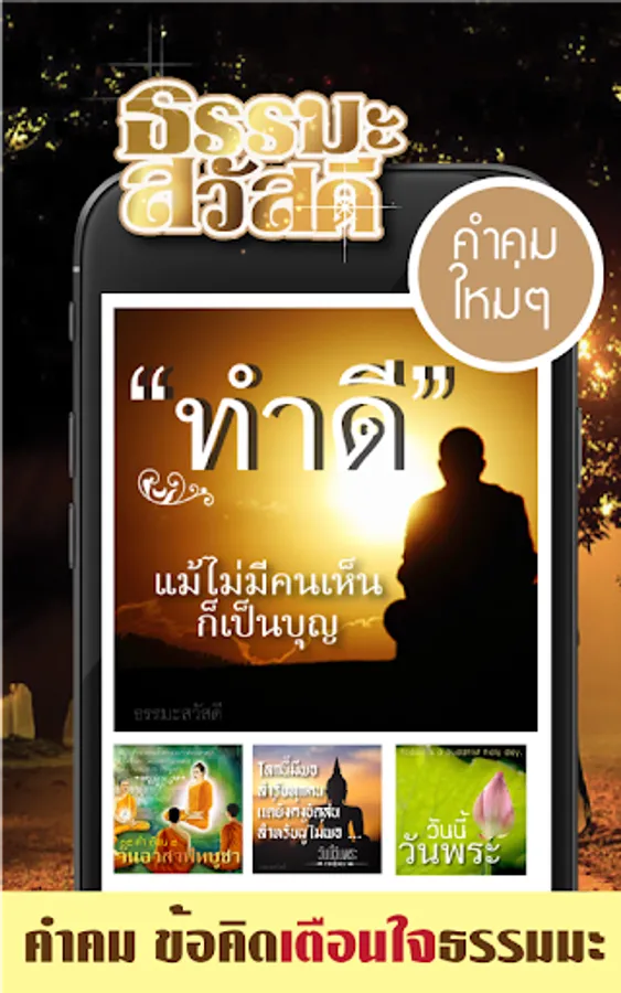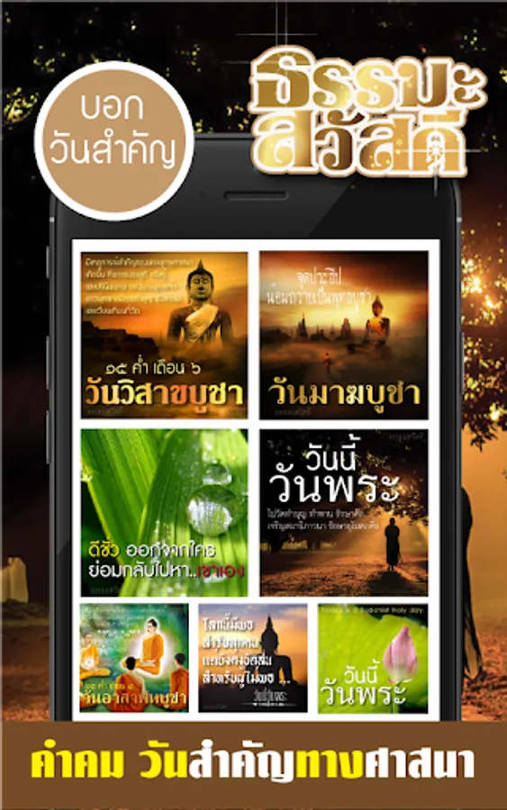 Together to send good Dharma as moral reminders, teachings for good people and propagate goodness With today's app, holy day It is the moral teachings, we have quotes from Vesak Day, Lent Day, Makha Bucha Day, Asala Day, Worship Day, Venerable Day for you to use to send to each other and with Dharma online straight away.