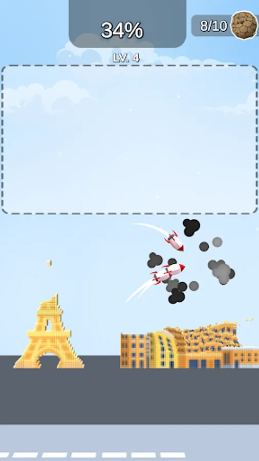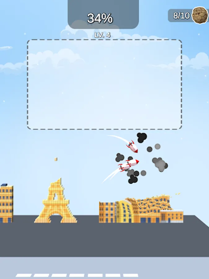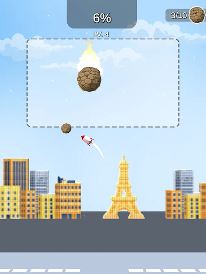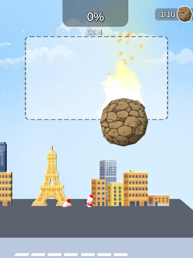 Tap on screen, the longer you hold your finger on the screen, the bigger your asteroid becomes. Release to drop it on city buildings. While tapping move left and right to decide where to drop. Be careful, if the missiles will hit asteroid while you tapping it will be destroyed. Try to demolish all buildings.