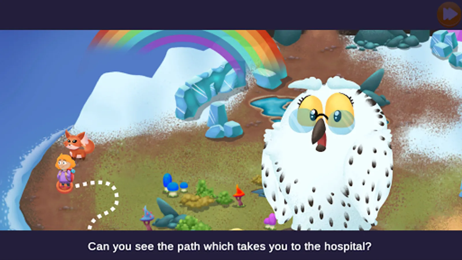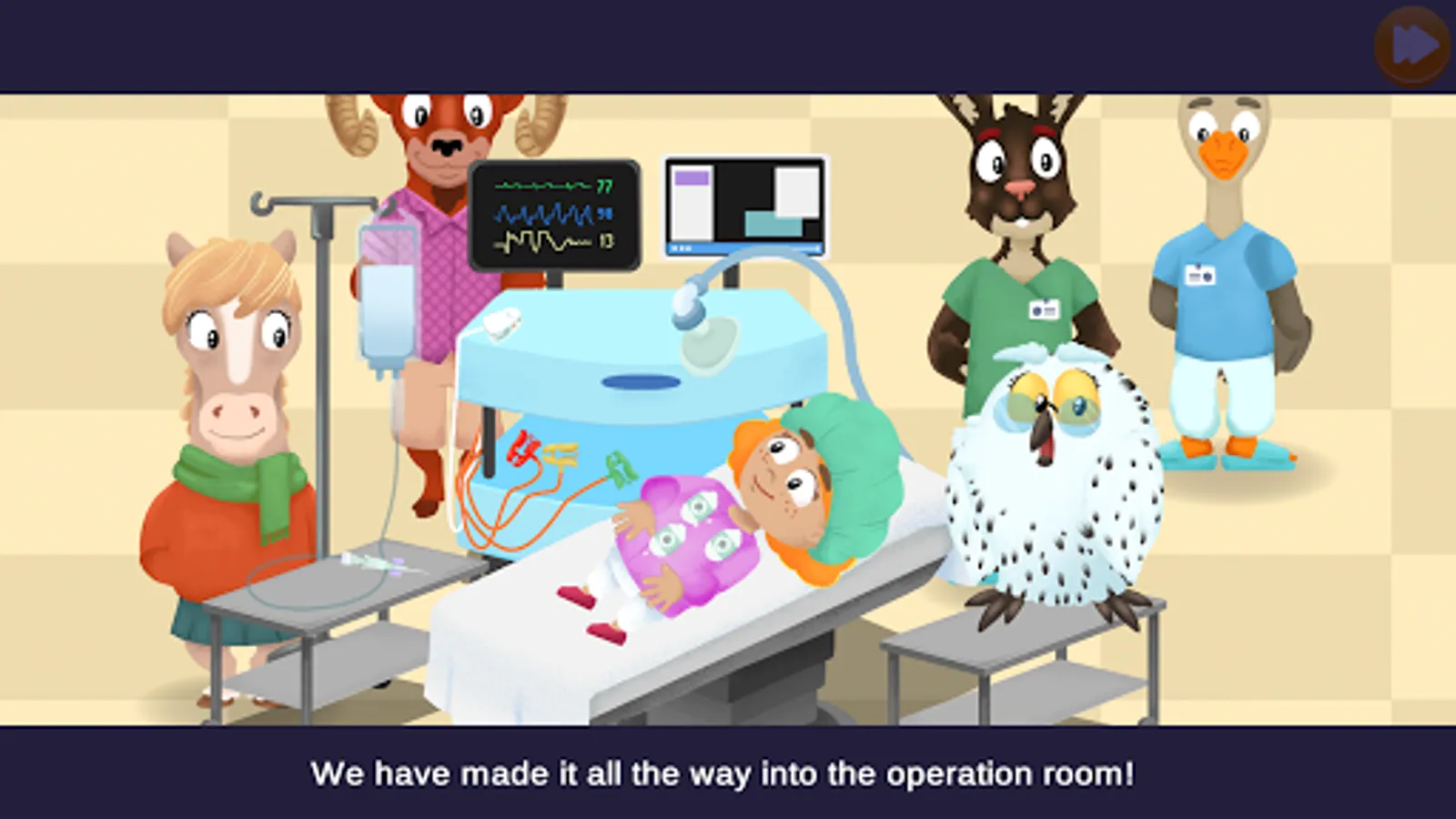 Mina the Owl is a friendly narrator who explains and guides the child on its journey. Set in nature-inspired by Iceland combined with realistic videos from the hospital setting, this beautiful game boasts colorful illustrations, music, and animation, plus a set of characters you can choose from.