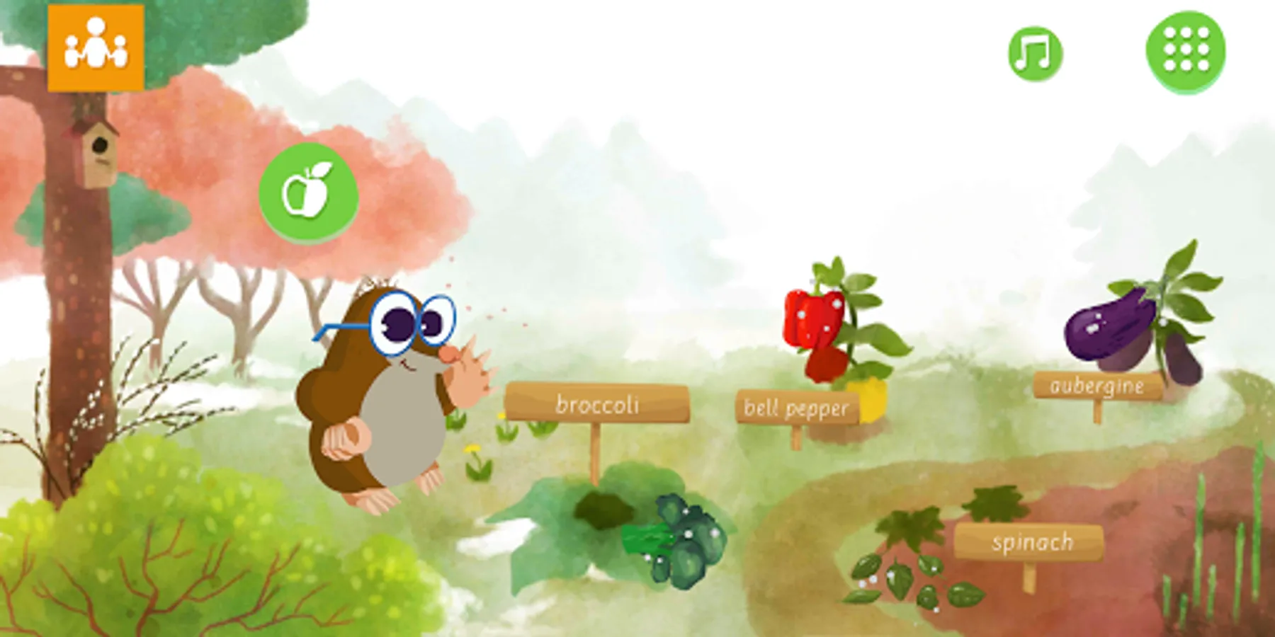 The app is split into four seasons, each of which is further divided into three sections: exploration of vegetables under the guidance of an adult, recording of vegetable tasting sessions (taste bank) and mini-games that can be freely played in Mole’s World. The vegetables selected for exploration are grouped by season, broadly based on harvesting periods. Each season includes six vegetables that can be found in Mole’s World. A learning section intended to be used under adult supervision can be opened by tapping on the image of a given vegetable. The purpose is to talk about the vegetable, find out about its properties through various tasks, and play games.