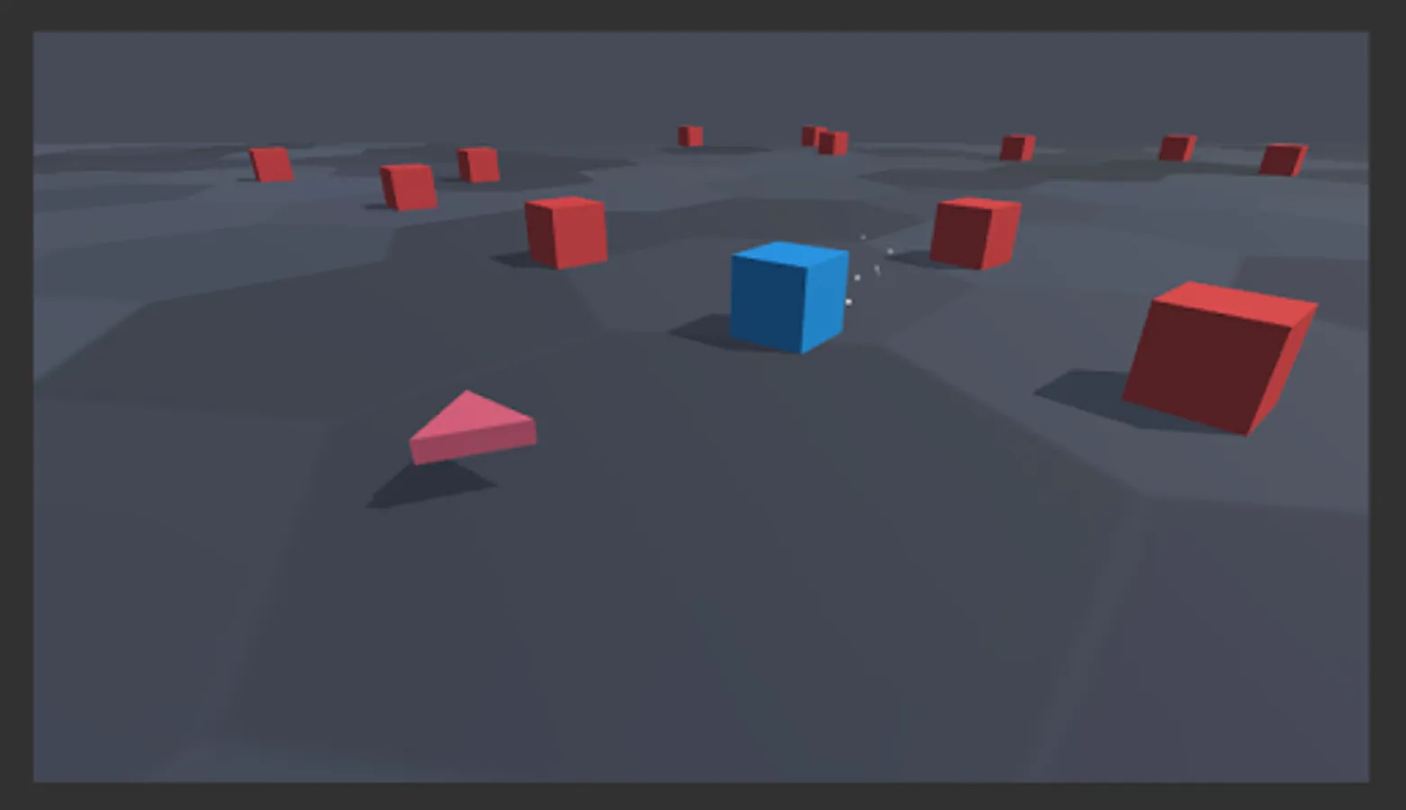 * The blue hypercube never stops or rather stops shooting, so it controls the direction of the bullets, to avoid enemies.