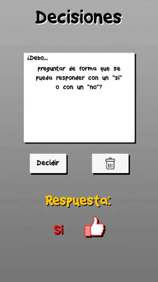 Simply put your question so that you can answer "yes or no" and when you click decide the application will help you make the best decision.