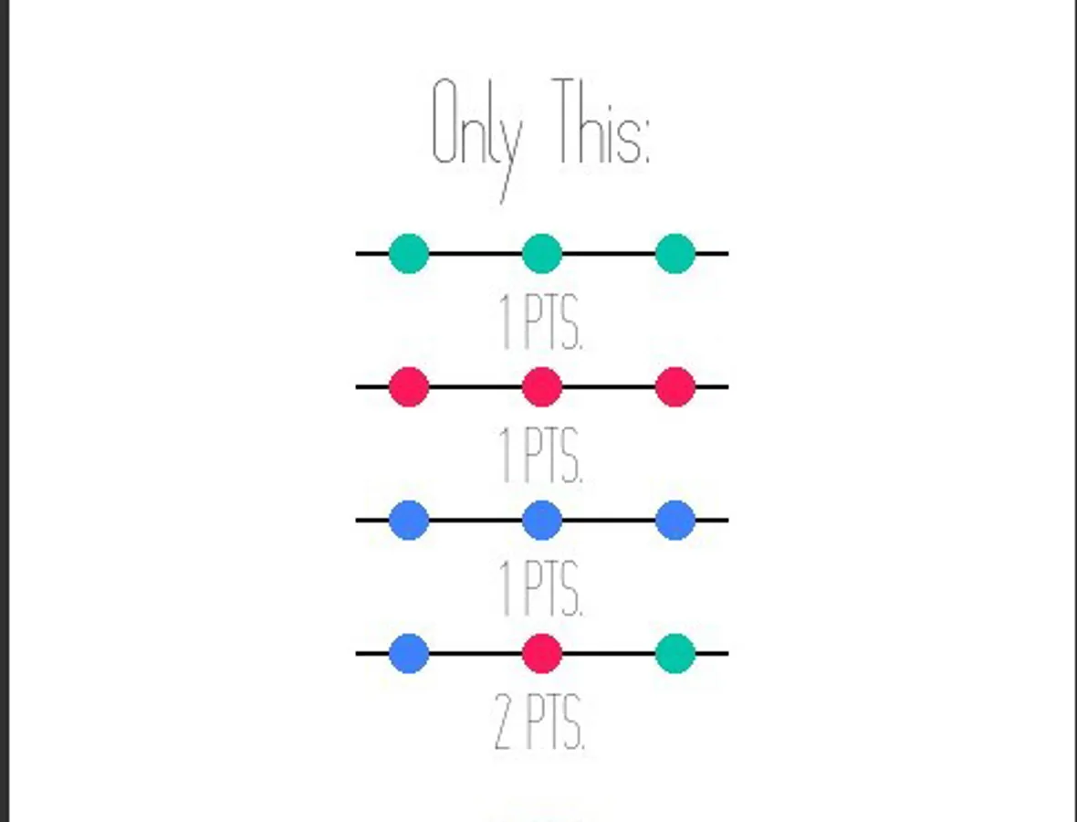 Three in a row, minimalist simple game with cool and warm colors.