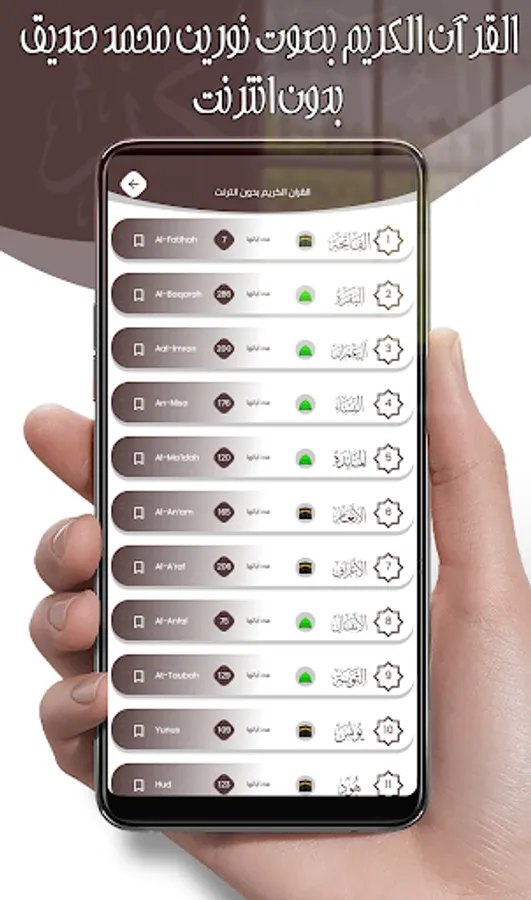 The Noreen Muhammad Siddiq - Quran without Net application allows you to hear all the surahs of the Holy Qur’an through your mobile phone or tablet with ease and ease through one program that contains all the surahs of the Holy Qur’an. The interface of the Noreen Muhammad Siddiq - Qur’an without Net program is also distinguished by being very simple. What enables you to use the program with ease and ease; You will not suffer any difficulty, starting from downloading the program from the store, to downloading it and using it to listen to the surahs of the Noble Qur’an.
