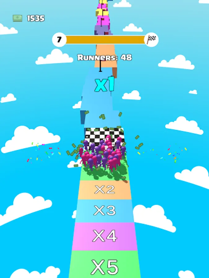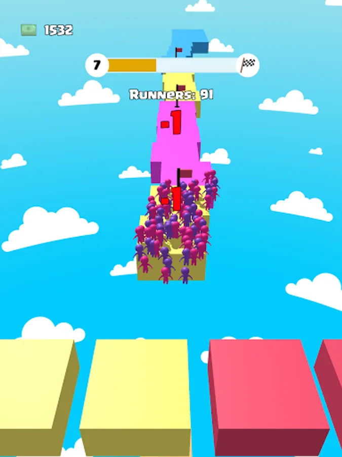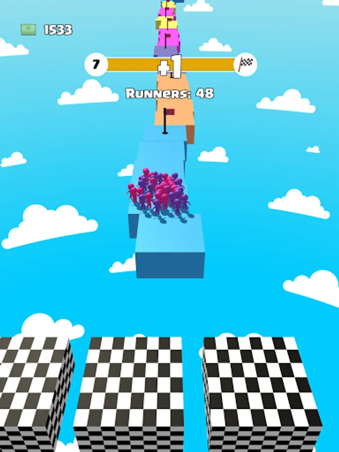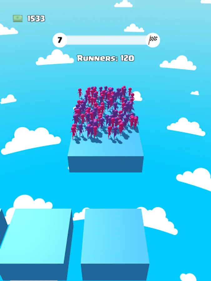 Stack bridges together and pave the way for the runners. Don't let them fall into the void!