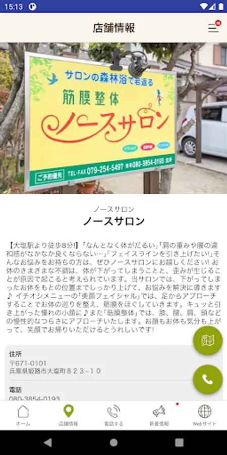 The map of the store is displayed and it is linked with the map app, so you can easily find it even when you visit the store for the first time.