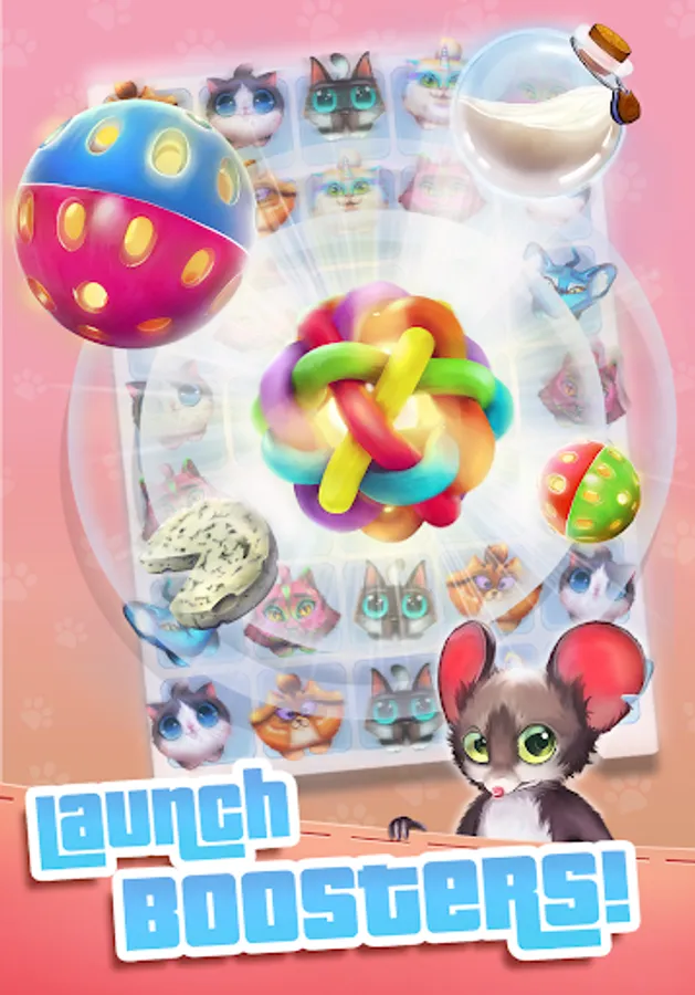Successful of beating colorful match 3 levels deliver you food, suits for the cats, and materials that you can renovate your mansion. The more chapters you can unlock, the bond with your sweet kitten is more tightly! Don’t hesitate, meet your cute kitten pal and start your journey!