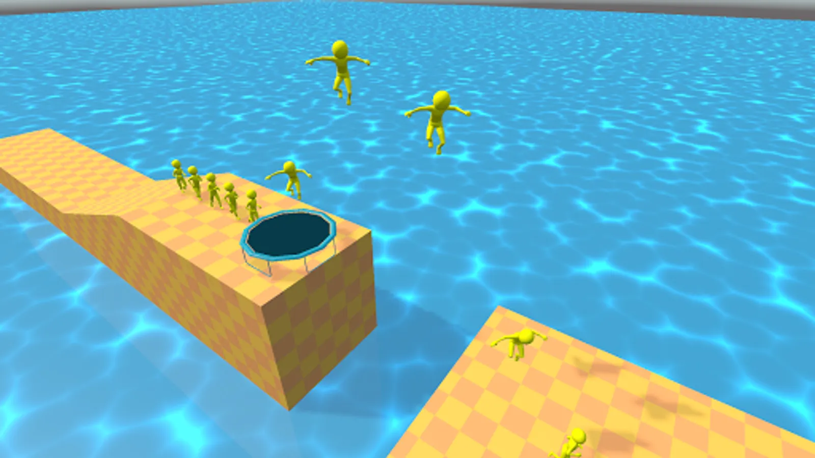 You can't control crowd directly, but stickman interact with object that you place. Use it to help them reach finish line and survive!