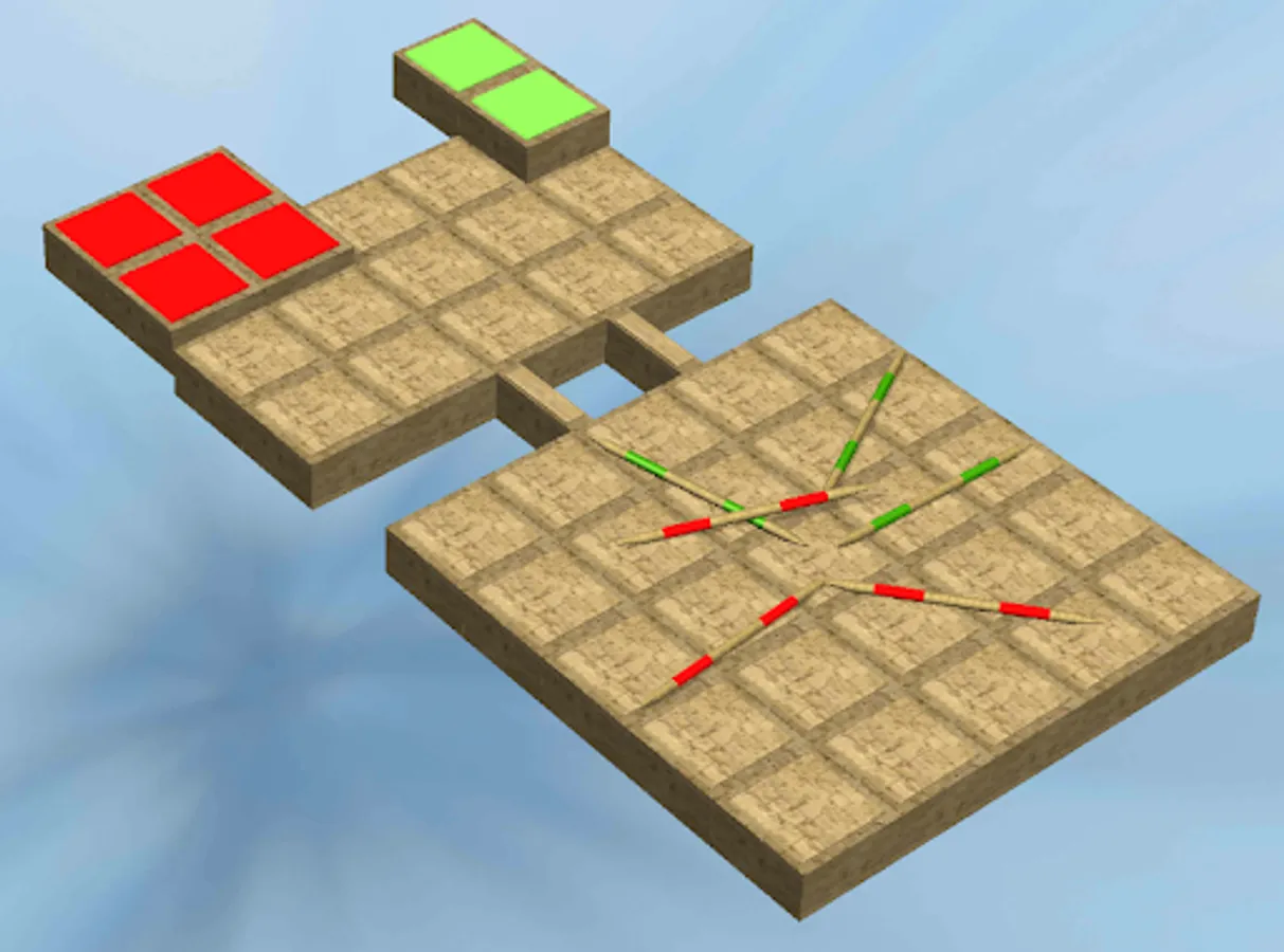 - If only sticks of the same color as the flagstones, then the flagstones rises. Sticks are earned with a bonus, and the slab returns to position.