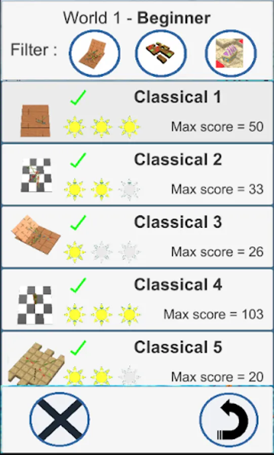 At the start of each game, the main objective of the trays is displayed (eg removing all the sticks, making a number of points, touching the treasure, etc.).