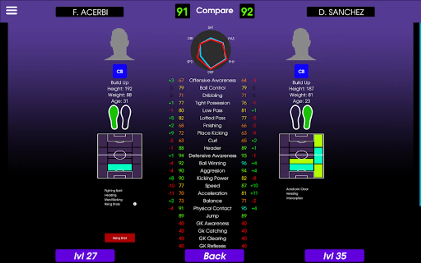 Player database also shows each players individual dribbling skills. No more having to work out which player can do which dribbling skill. This app does it for you. *** PESHUB pro feature***