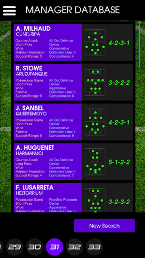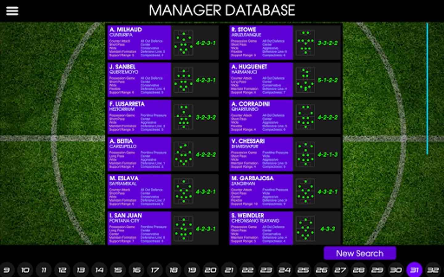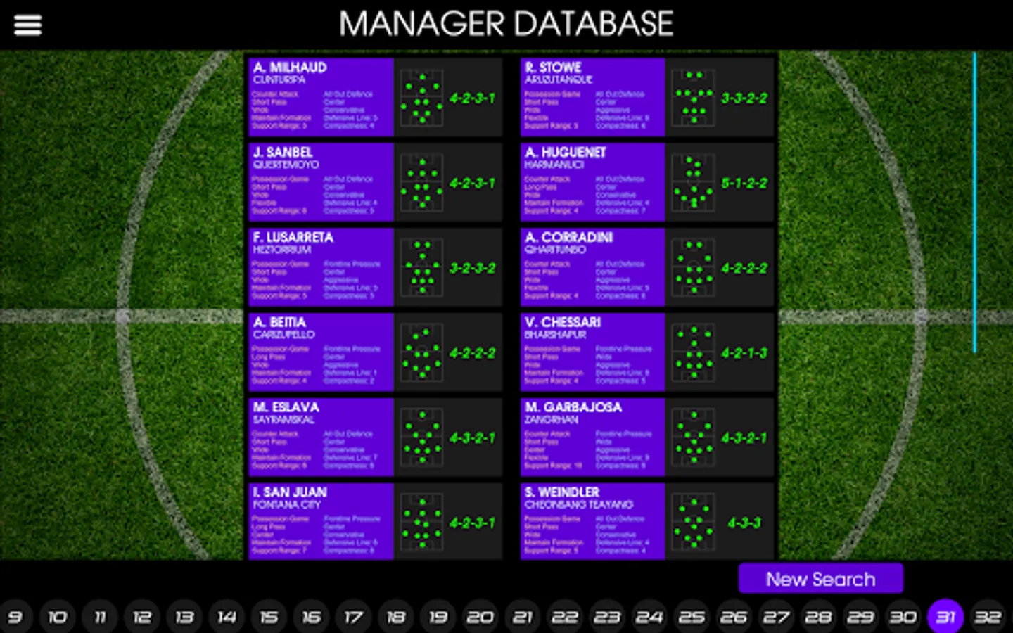 Featuring a manager database with search functionality showing each managers tactics and formations.