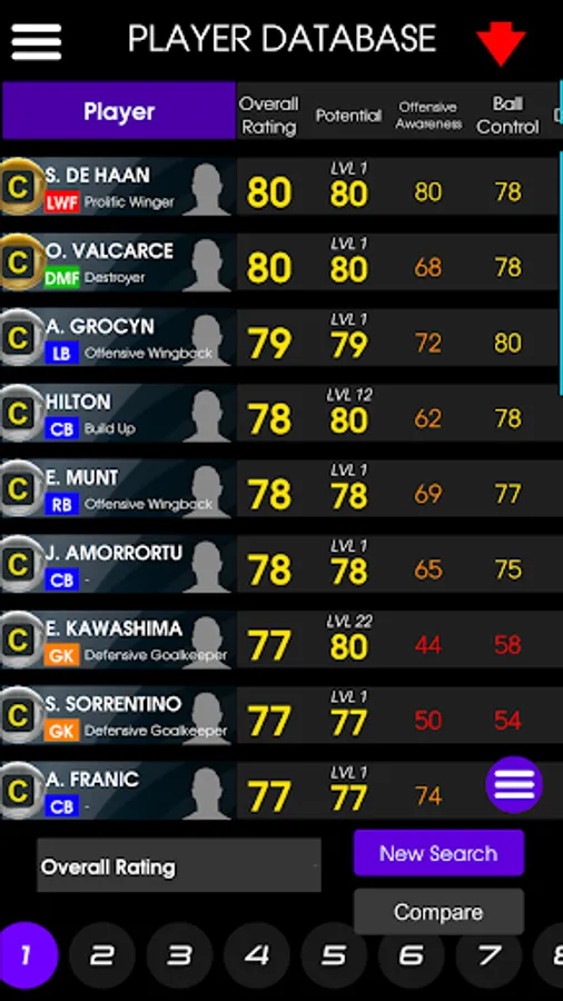The player database has the ability to search for player stats at their highest level, not just stats at level 1. *** PESHUB pro feature***
