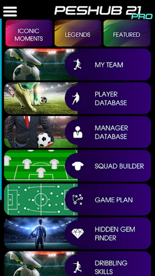 • Calculates the dribbling skills that each player can perform and shows controller animations on how to perform them **PESHUB Pro feature**.