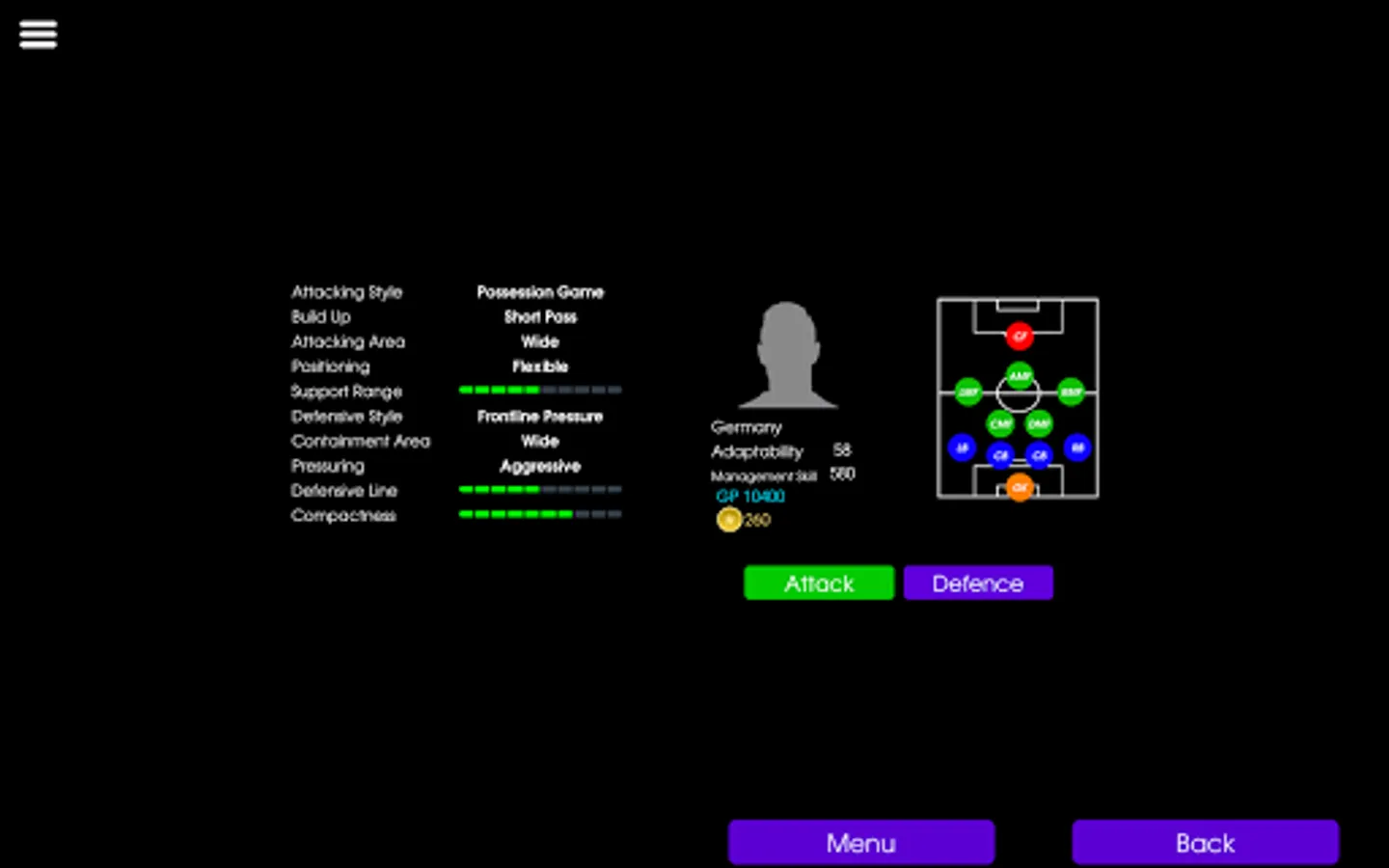 Game Plan simulates player off the ball movement in attack and defence. This allows you to view any weak and strong points in your manager's tactics against other managers.