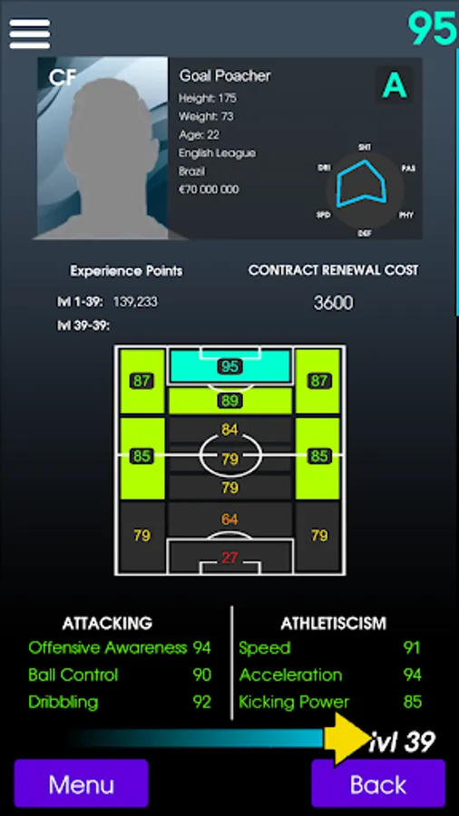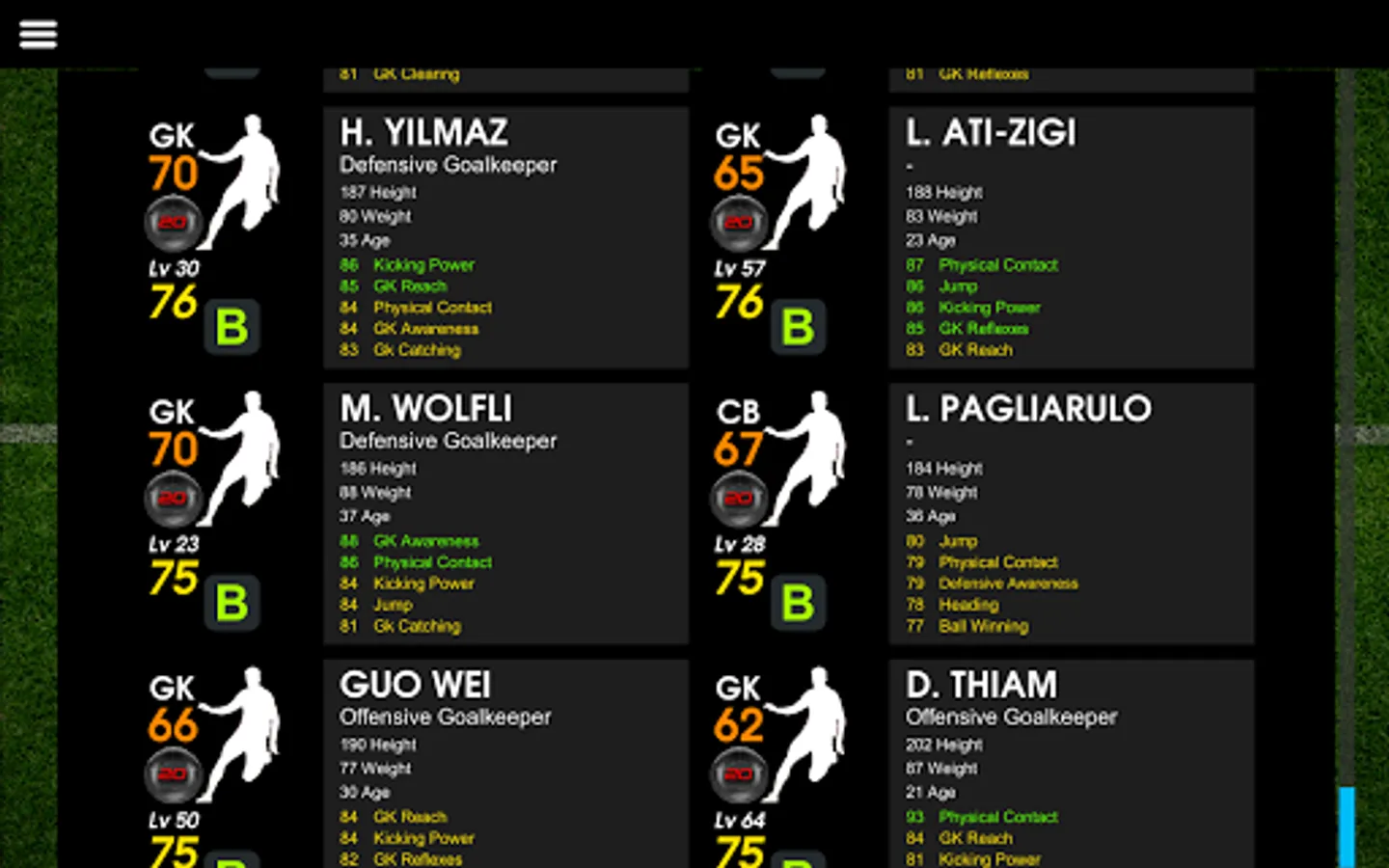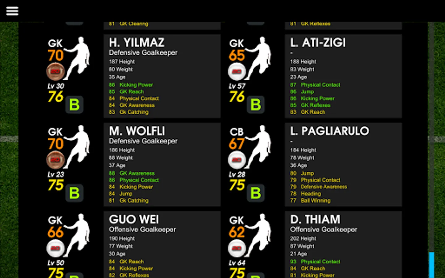 • Keeps track of player condition throughout the season to help you make better decisions on who to level-up.