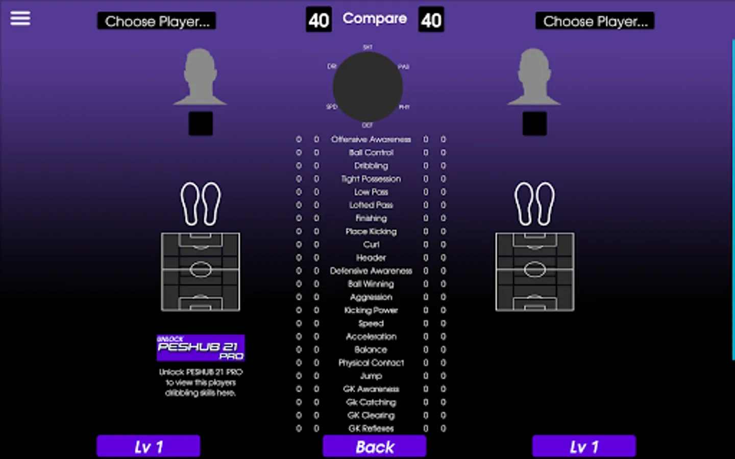 • The ability to search for players using their stats at max level, not just level 1. **PESHUB Pro feature**.