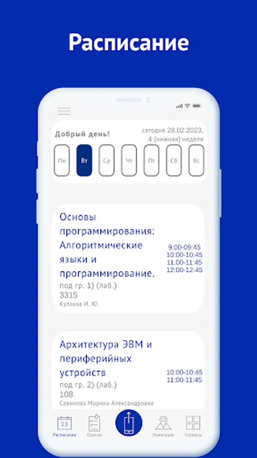 A mobile information application for students and teachers of the university, which contains the schedule, grades, navigation within the campus and services!