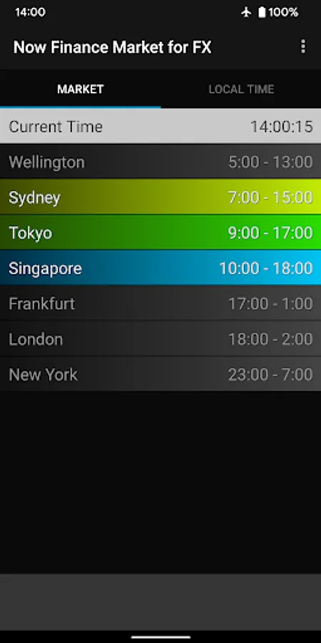 It is an application to know the market that is opening now. Highlight from 9:00 to 17:00 each market. The world time clock that can know local time is attached also.