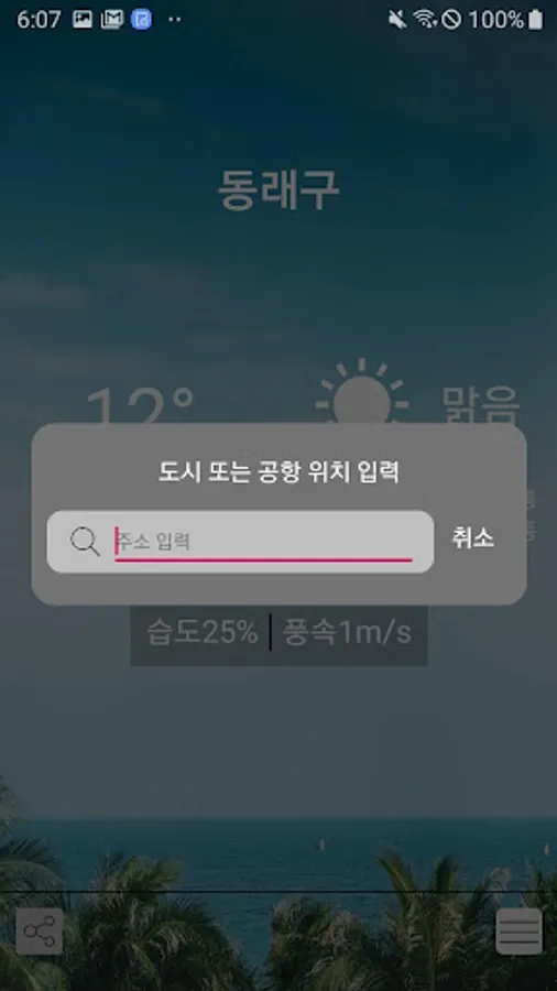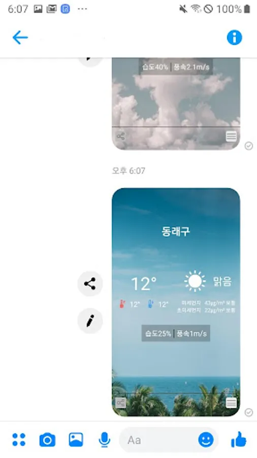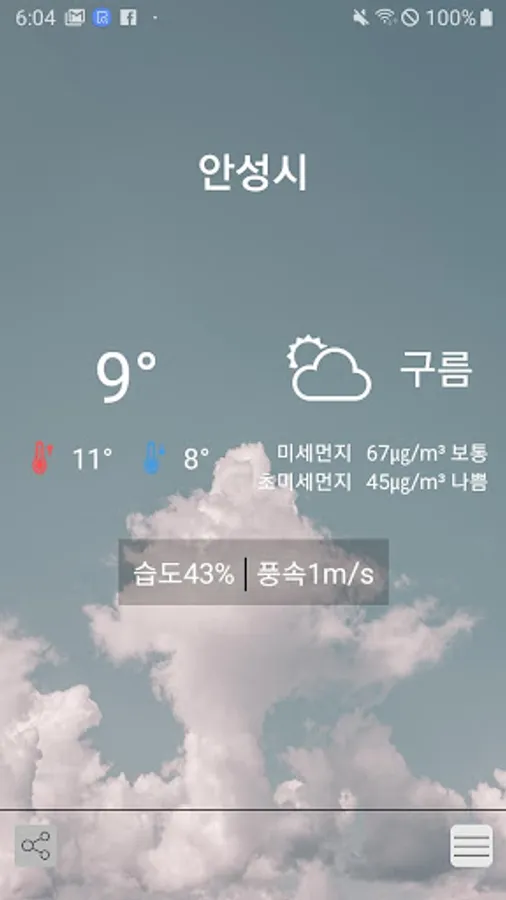 - 날씨 / 미세먼지 표시 화면을 이미지로 캡쳐하여 SNS 공유 기능